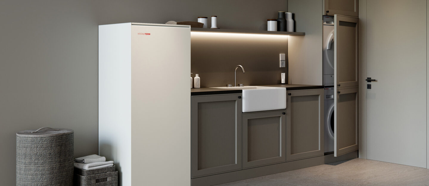 A water-to-water heat pump uses groundwater as a stable heat source for heating and domestic hot water.